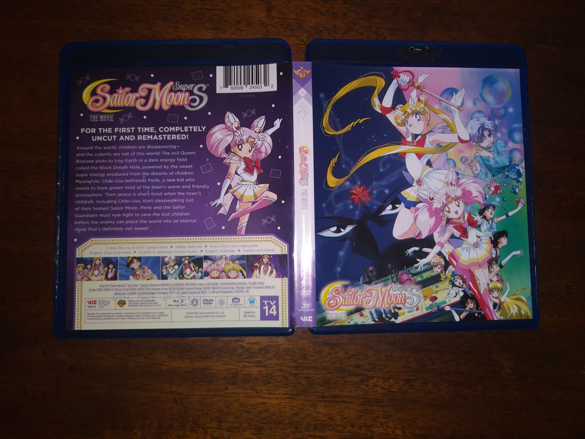 “For the first time completely uncut and remastered! Around the world, children are disappearing—and the culprits are not of this world! The evil Queen Badianier plots to trap Earth in a dark energy field called the Black Dream Hole, powered by the sweet, sugar energy produced from the dreams of children. Meanwhile, Chibi-Usa befriends Perle, a new kid who seems to have grown fond of the town’s warm and friendly atmosphere. Their peace is short lived when they find the town’s children suddenly start sleep-walking out of their homes, including Chibi-Usa! Sailor Moon, Perle, and the Sailor Guardians must now fight to save the lost children before the enemy can place the world into an eternal sleep that’s definitely not sweet!”