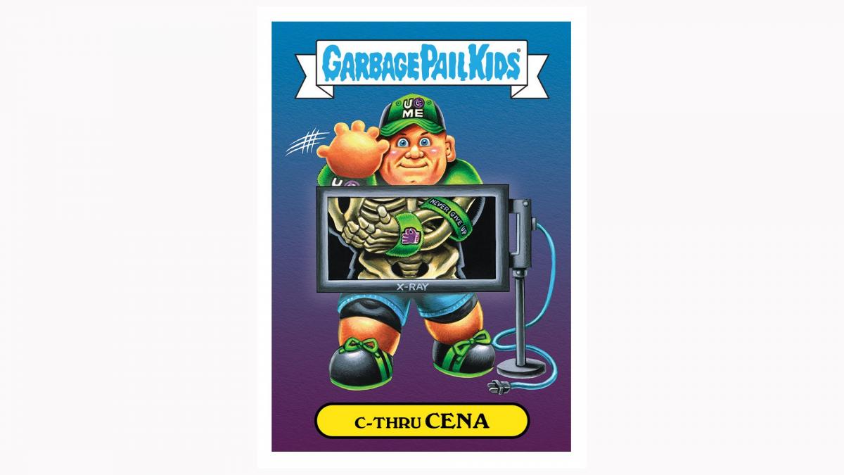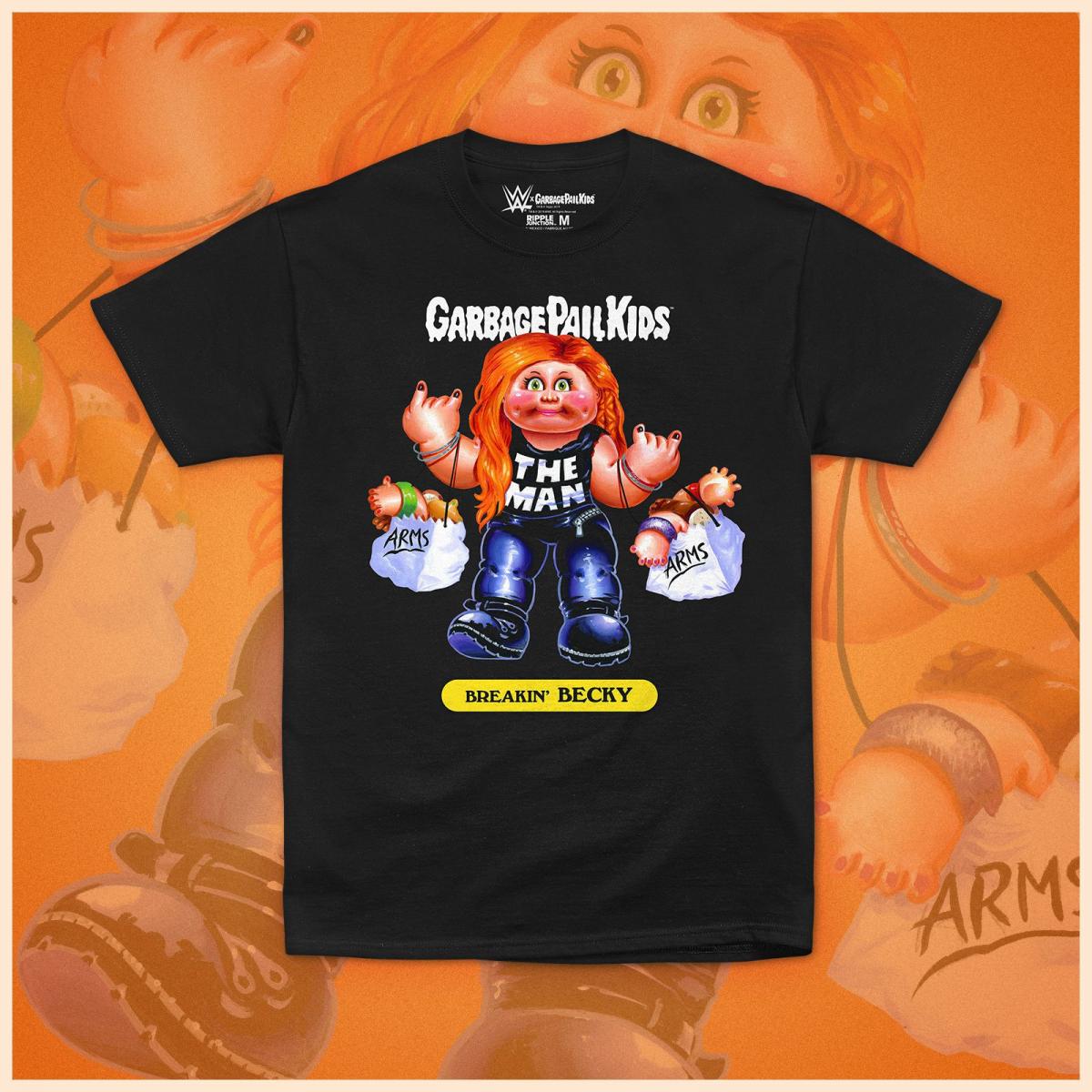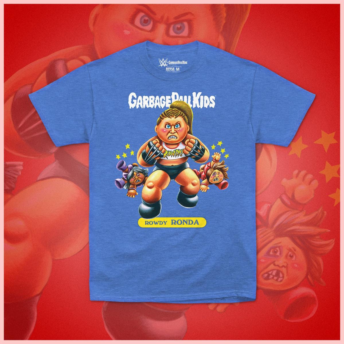 The WWE shop will be selling Garbage Pail Kid designs of Becky Lynch, Ronda Rousey, John Cena, Seth Rollins and The Miz that retail for $27.99.
