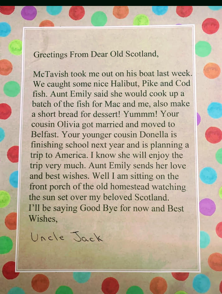 My dad doesn’t mind his characters but leaves all the helping stuff to my Aunt. Aunt Celeste has really made this all possible. She takes his pictures and prints his letters to be mailed. She lets him have fun considering he’s 91 and she knows how happy these projects make him despite his unending trivia he wants Celeste to Google.