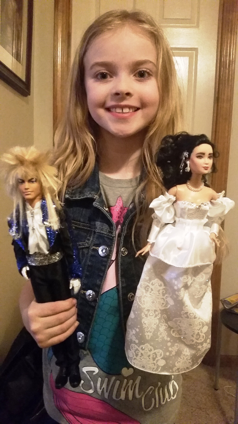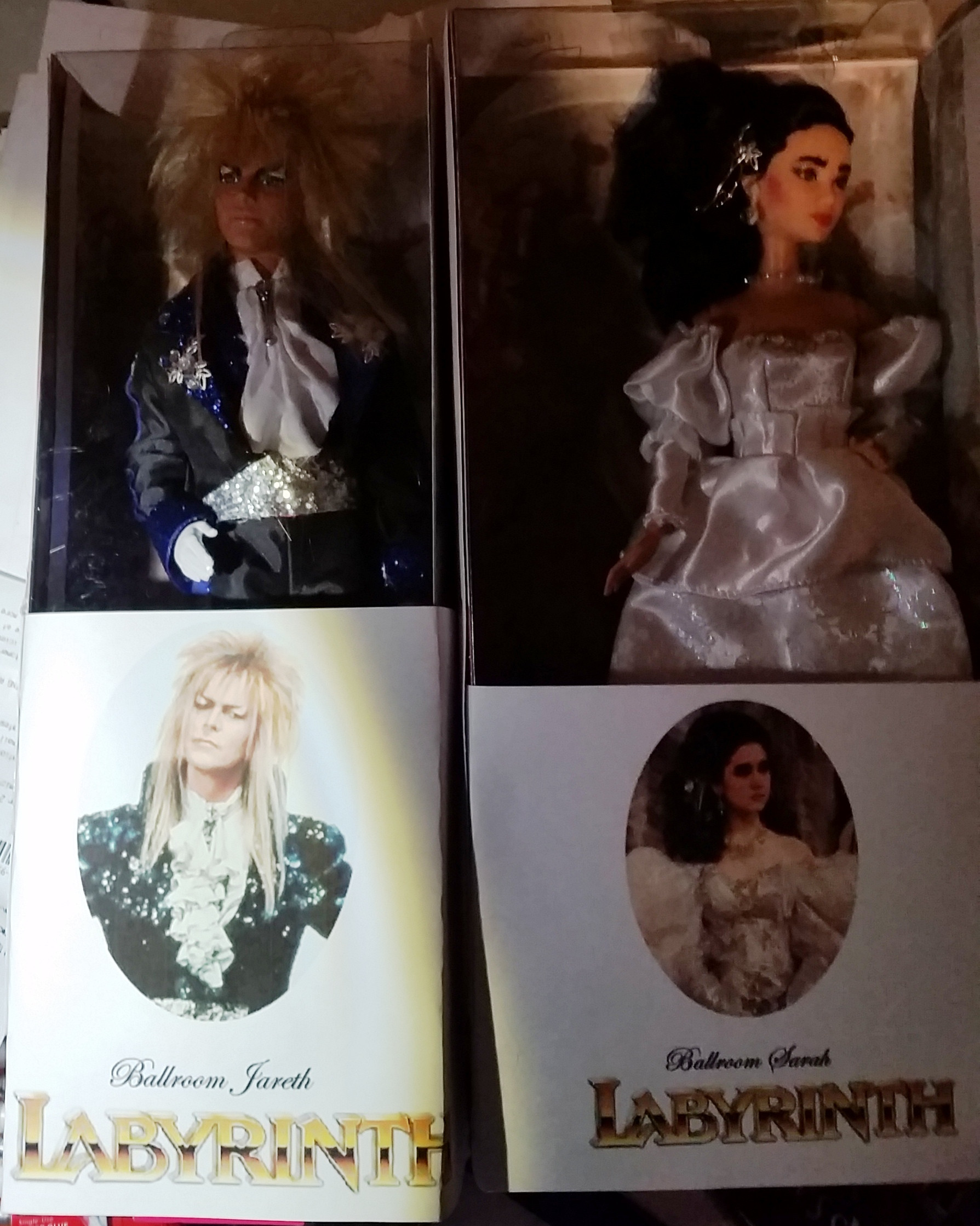 He scoured the internet to find just what I mentioned. There were home made plushies, collectors edition figures and dolls, but not something that would really be great to play with. He took it to the next level by creating his own version by repurposing other Barbies to make Sarah and Jareth. Here is the video of how he created the dolls and his story on how/why they were made.