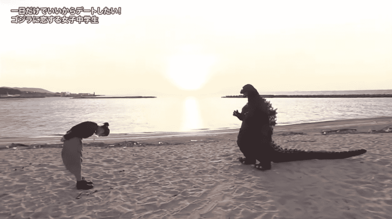 On the date they did things like hold hands at the Godzilla museum, have a picnic with a bento box and they ended the date on the beach where the girl even proposed! Unfortunately Godzilla is a free spirit and did not accept but what a great story to tell her classmates and future husband.