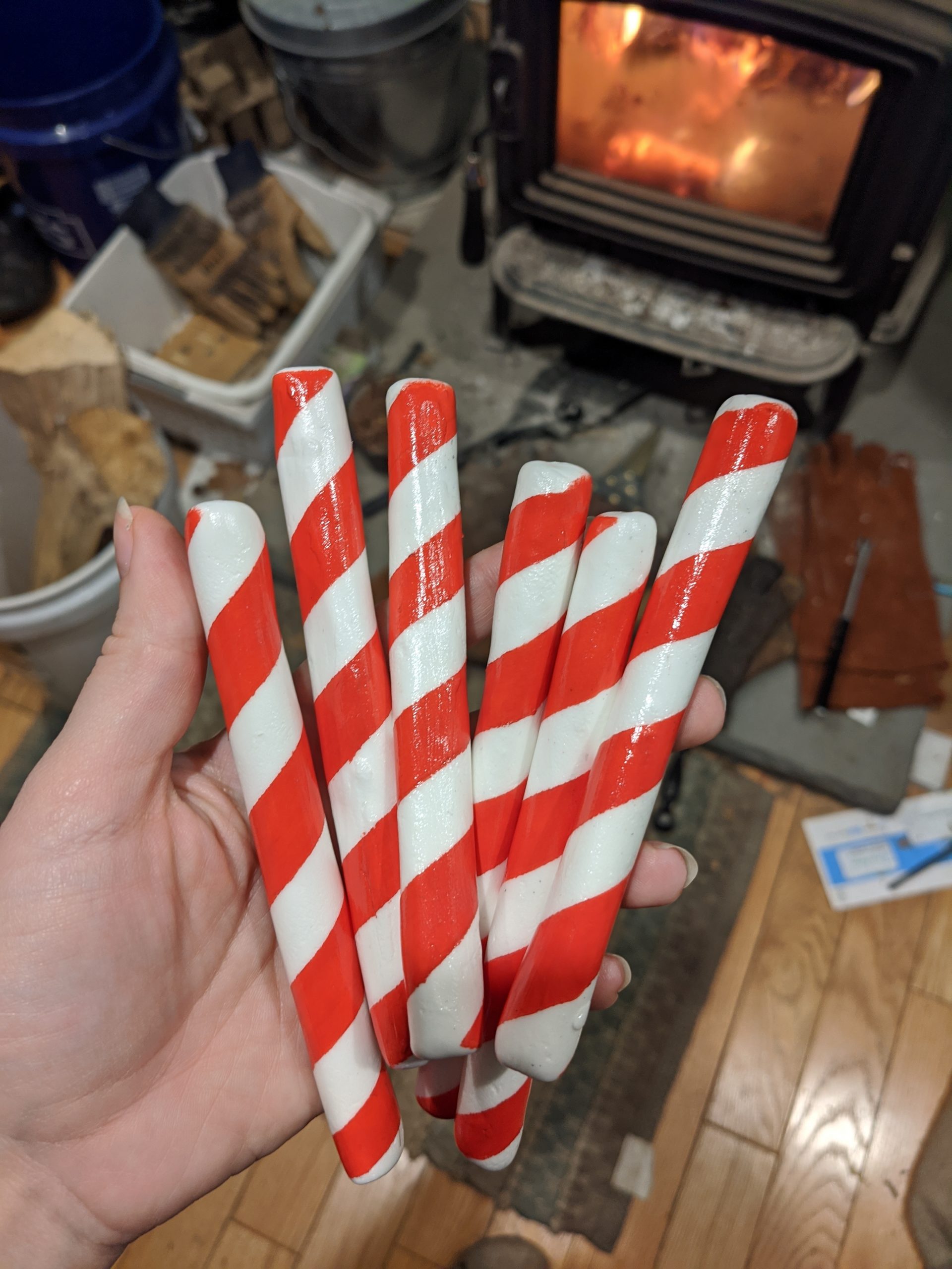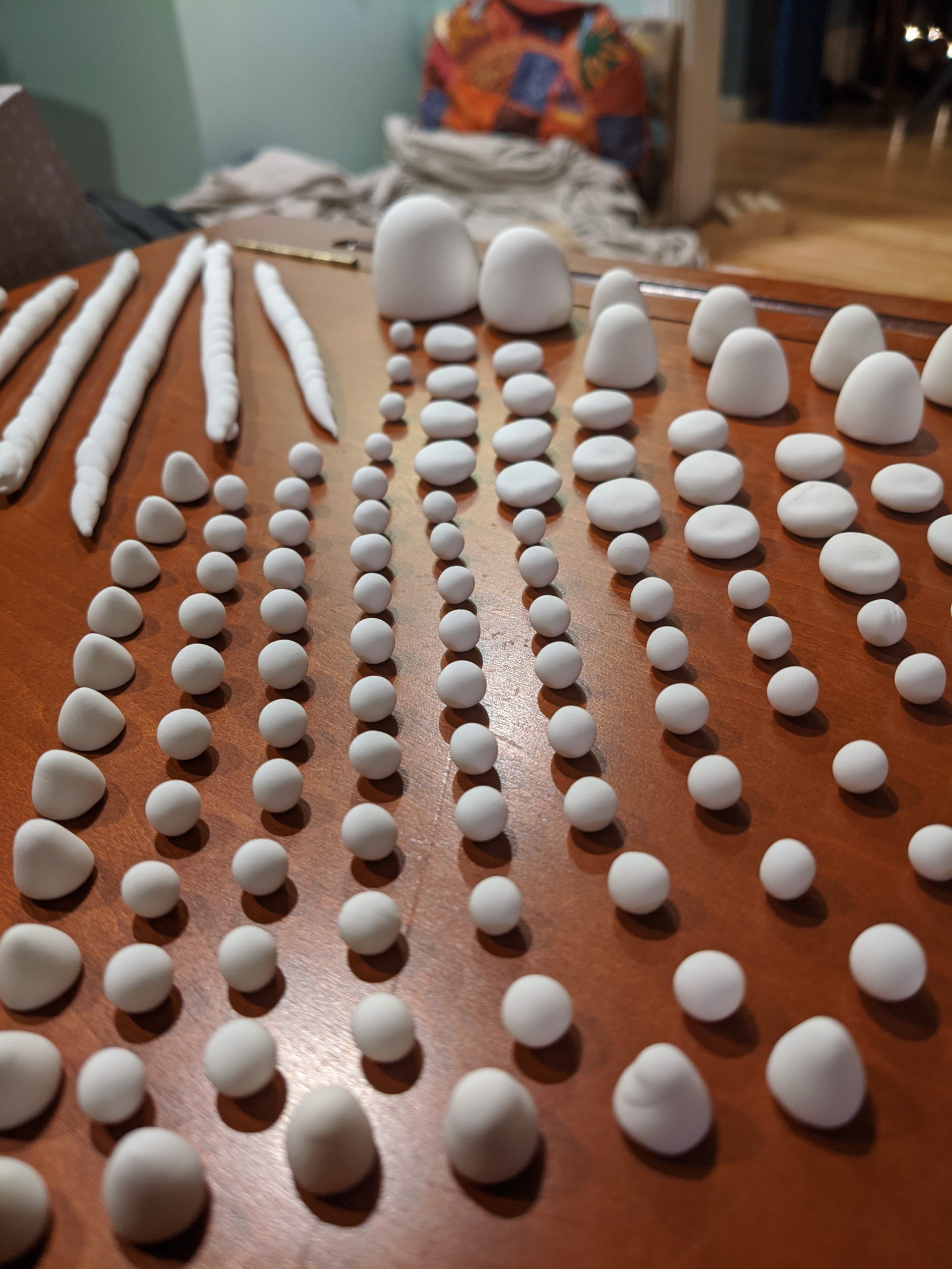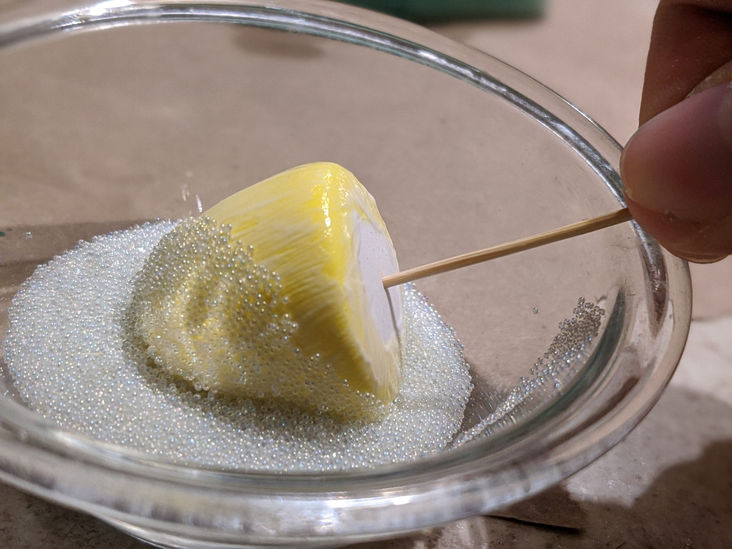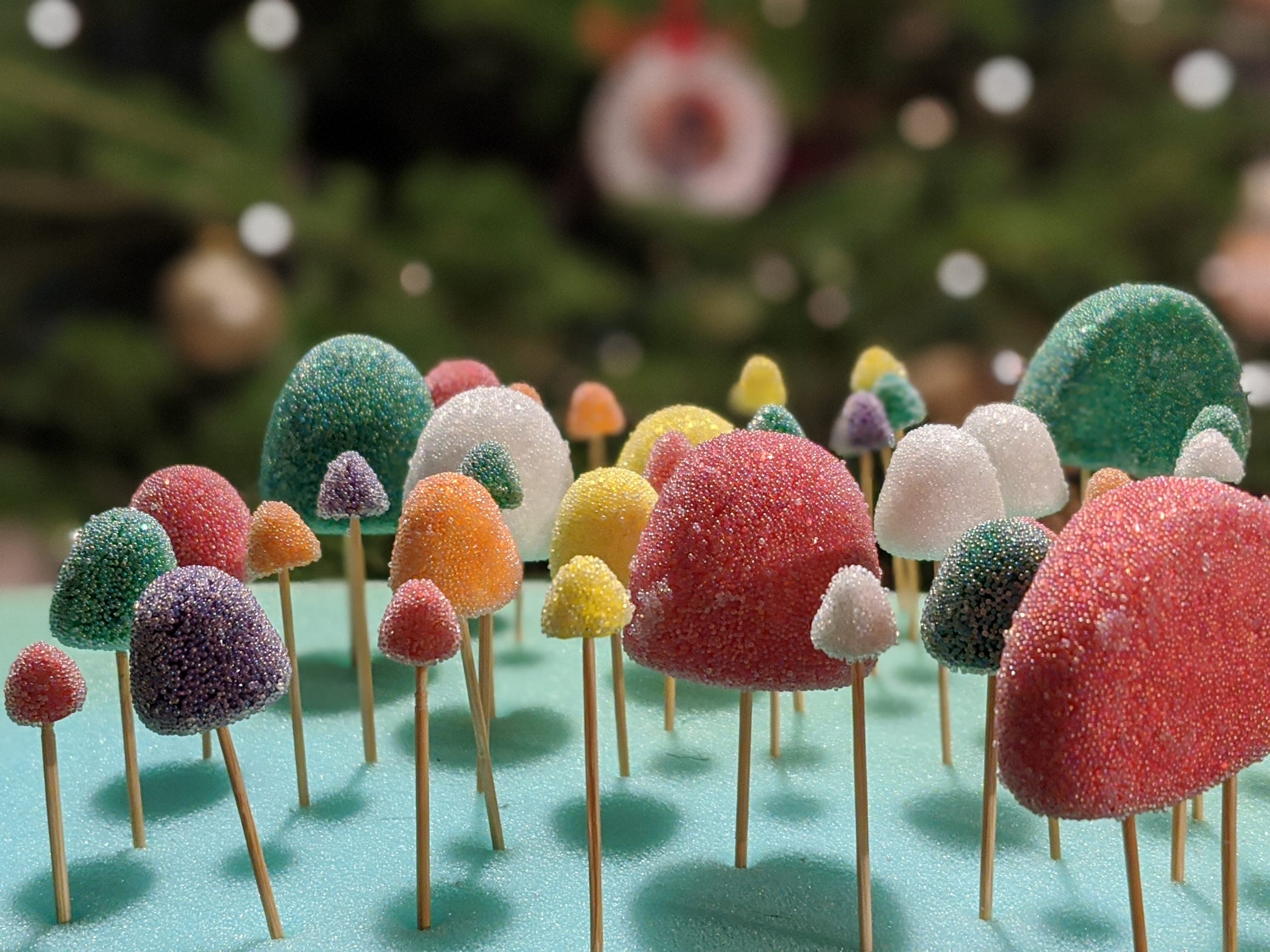 I then made a whole bunch of fake candy pieces out of foam clay and painted them. For the gumdrops, I painted a coat of Mod Podge onto them, and rolled them in tiny beads that look like fake sugar (also purchased from Etsy). For the rest, I applied a top coat of Mod Podge to give them a shiny finish.